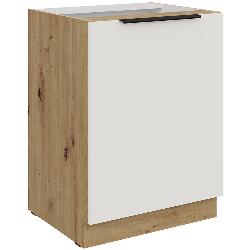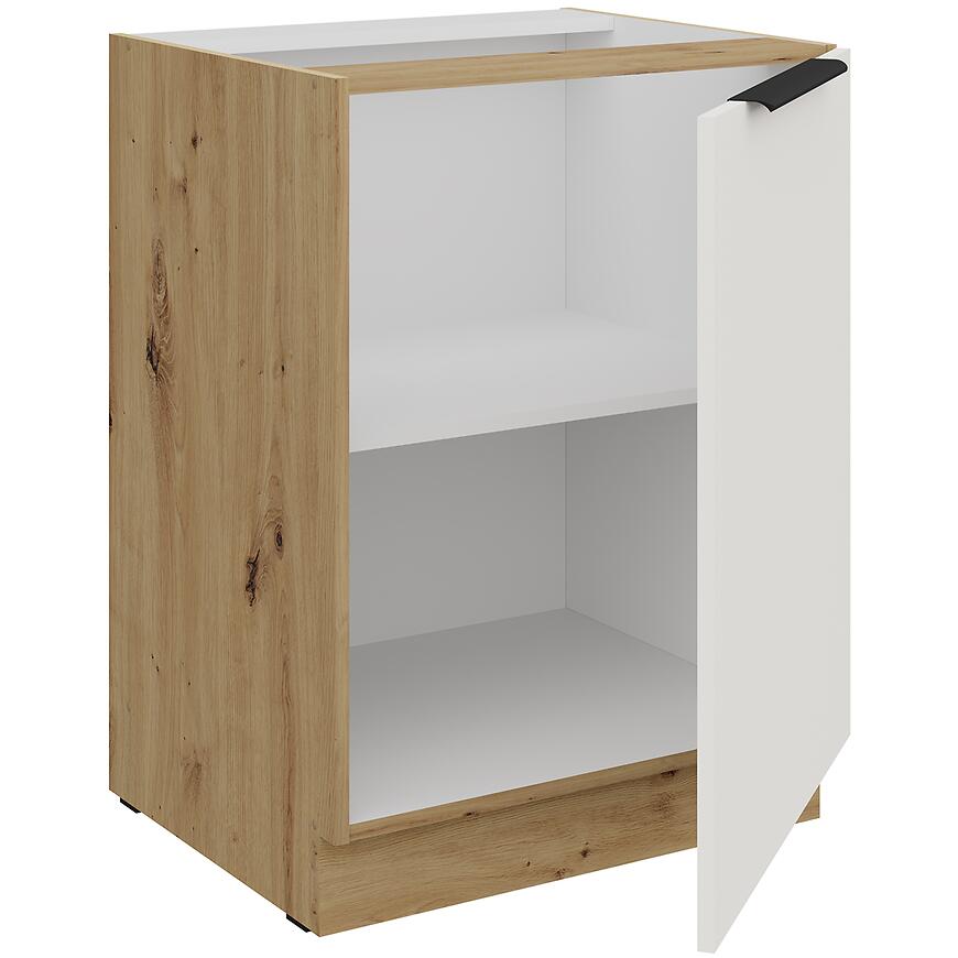 Szafka kuchenna Aria-Wh/Ar Anti Fingerprint 60d 1f Bb to praktyczna szafka dolna o wymiarach 82 × 60 × 52 cm, łącząca nowoczesny design z funkcjonalnością. Fronty w kolorze crystal white wykonano z laminowanej płyty wiórowej z matowym wykończeniem, co zapewnia odporność na odciski palców i łatwość utrzymania w czystości.