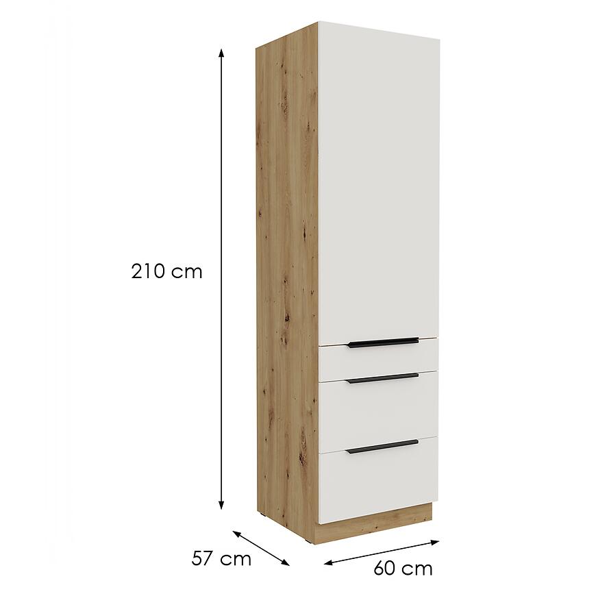 Szafka Kuchenna Aria-Wh/Ar Anti Fingerprint 60dks-210 1f 3s to przestronna kolumna kuchenna, która łączy funkcjonalność z eleganckim, nowoczesnym designem. Jej wymiary – wysokość 210 cm, szerokość 60 cm i głębokość 57 cm – pozwalają na wygodne przechowywanie naczyń, artykułów spożywczych oraz drobnego sprzętu kuchennego, nadając wnętrzu uporządkowany i estetyczny wygląd.