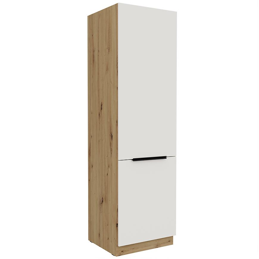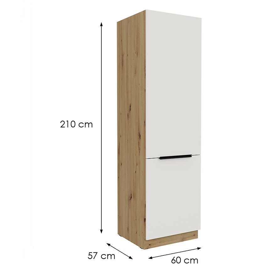Szafka kolumnowa Aria-Wh/Ar Anti Fingerprint to propozycja dla osób, które cenią połączenie jasnych powierzchni z delikatnym, naturalnym drewnem. Kolor crystal white w połączeniu z dekoracyjnym drewnem dąb artisan tworzy stylowy kontrast, który świetnie prezentuje się zarówno w dużych kuchniach, jak i mniejszych pomieszczeniach, gdzie jasne barwy optycznie powiększają przestrzeń. Matowe wykończenie akcentuje elegancję, a zastosowane materiały gwarantują trwałość i łatwość w utrzymaniu czystości.