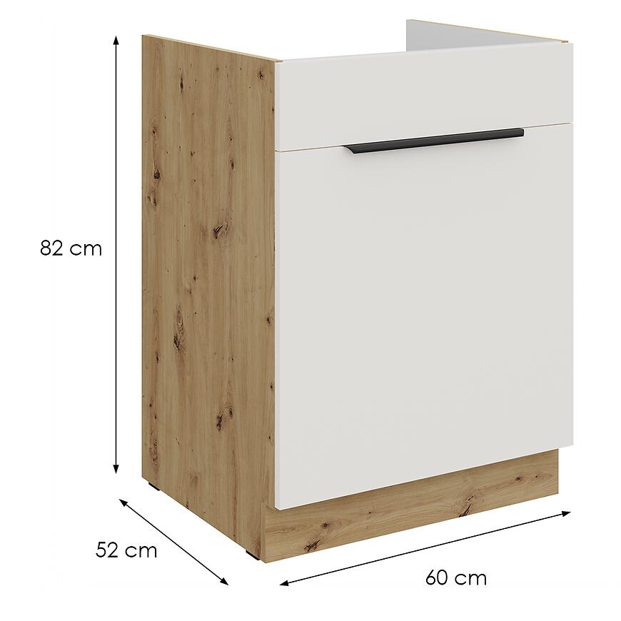 Szafka kuchenna Aria-Wh/Ar Anti Fingerprint 60zl 1s Bb to praktyczna szafka dolna o wymiarach 82 × 60 × 52 cm, łącząca nowoczesny design z funkcjonalnością. Fronty w kolorze crystal white wykonano z laminowanej płyty wiórowej z matowym wykończeniem, co zapewnia odporność na odciski palców i łatwość utrzymania w czystości.