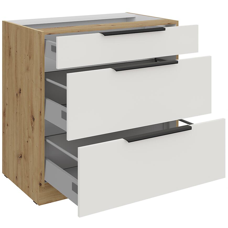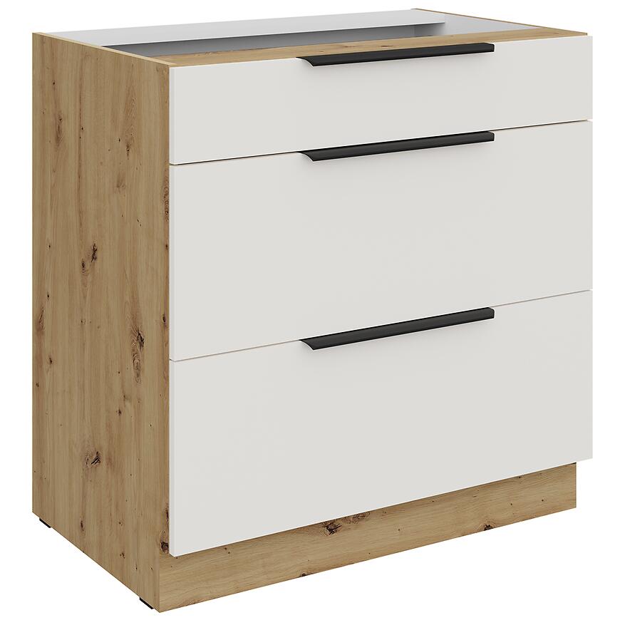 Szafka kuchenna Aria-Wh/Ar Anti Fingerprint 80d 3s Bb to przestronna szafka dolna o wymiarach 82 × 80 × 52 cm, łącząca nowoczesny design z praktycznymi rozwiązaniami. Fronty w kolorze crystal white wykonano z laminowanej płyty wiórowej z matowym wykończeniem, co zapewnia odporność na odciski palców i łatwość utrzymania w czystości.