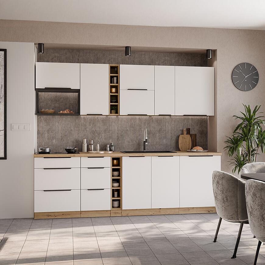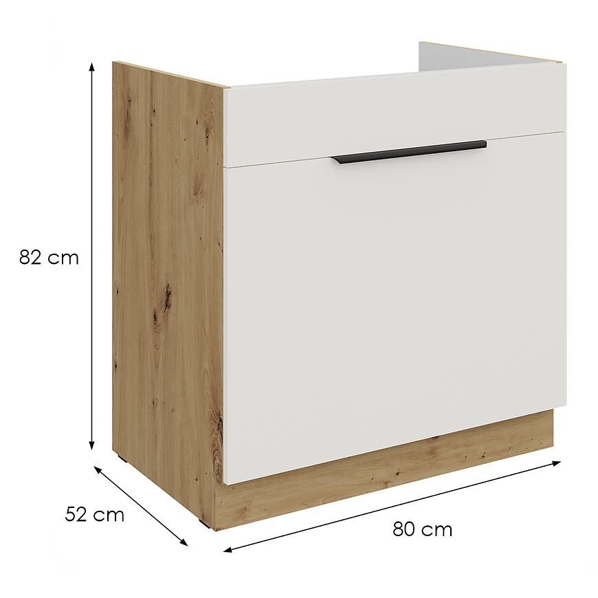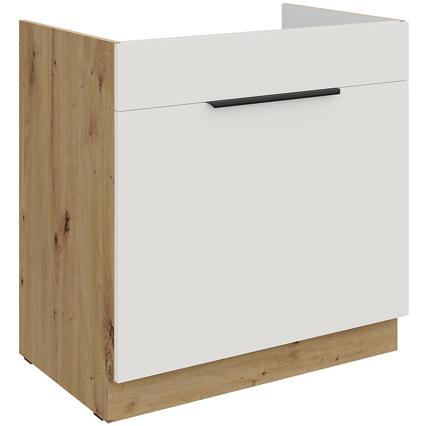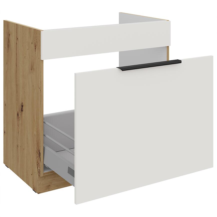 Szafka Aria-Wh/Ar Anti Fingerprint 80zl 1s Bb to stylowa i funkcjonalna propozycja dla osób, które cenią elegancję białych frontów w połączeniu z ciepłym, drewnopodobnym korpusem i nowoczesnym wykończeniem.