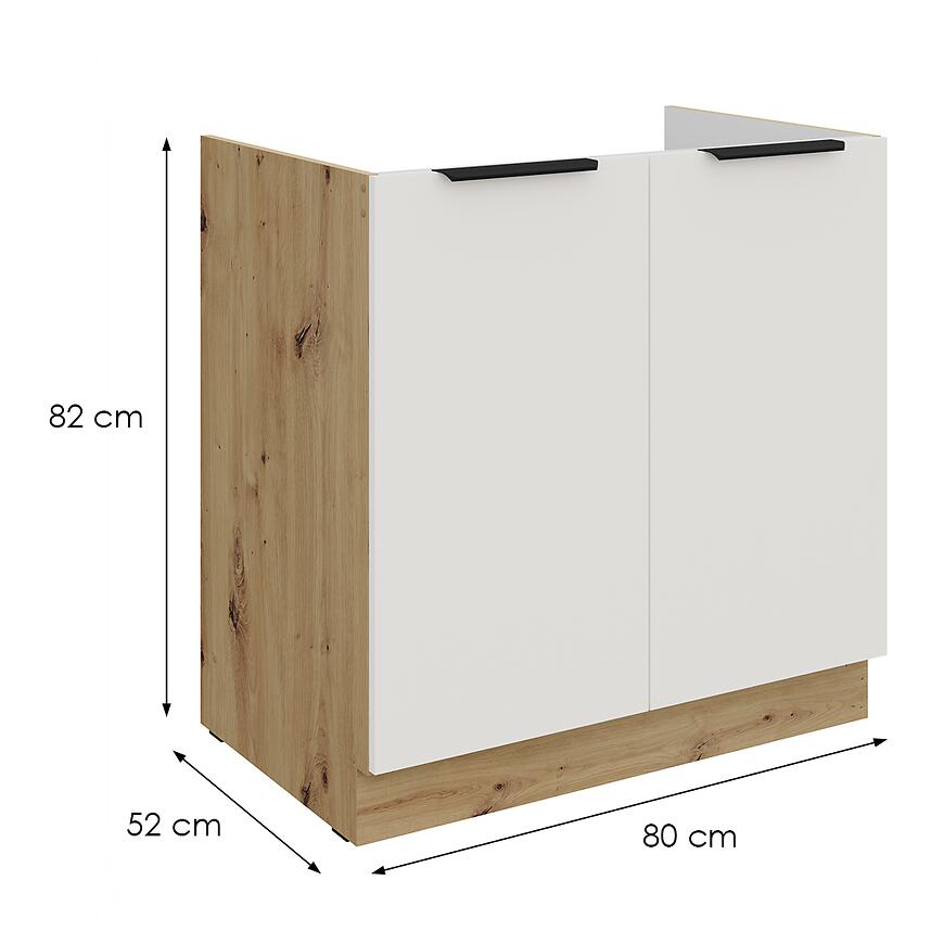 Szafka kuchenna Aria-Wh/Ar Anti Fingerprint 80zl 2f Bb to nowoczesna szafka dolna o szerokości 80 cm, wysokości 82 cm i głębokości 52 cm, która łączy elegancję z praktycznymi rozwiązaniami. Fronty w kolorze crystal white są matowe i wykonane z laminowanej płyty wiórowej, co zapewnia trwałość i odporność na odciski palców.