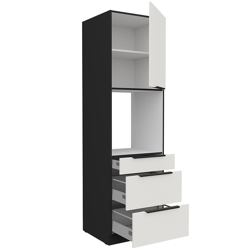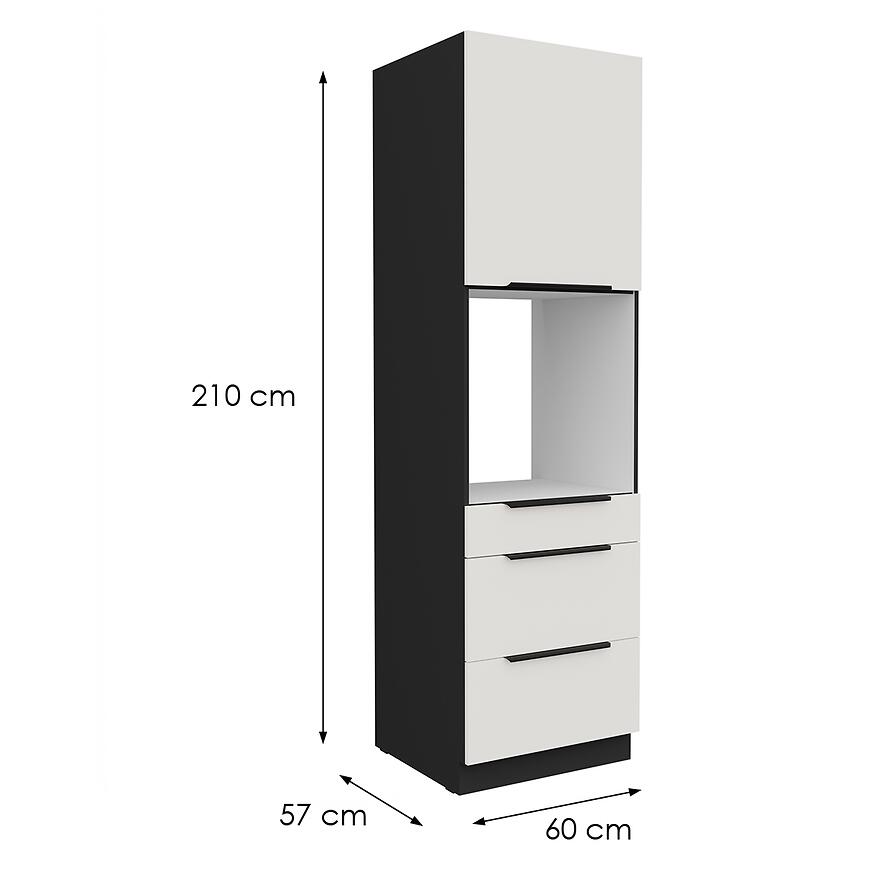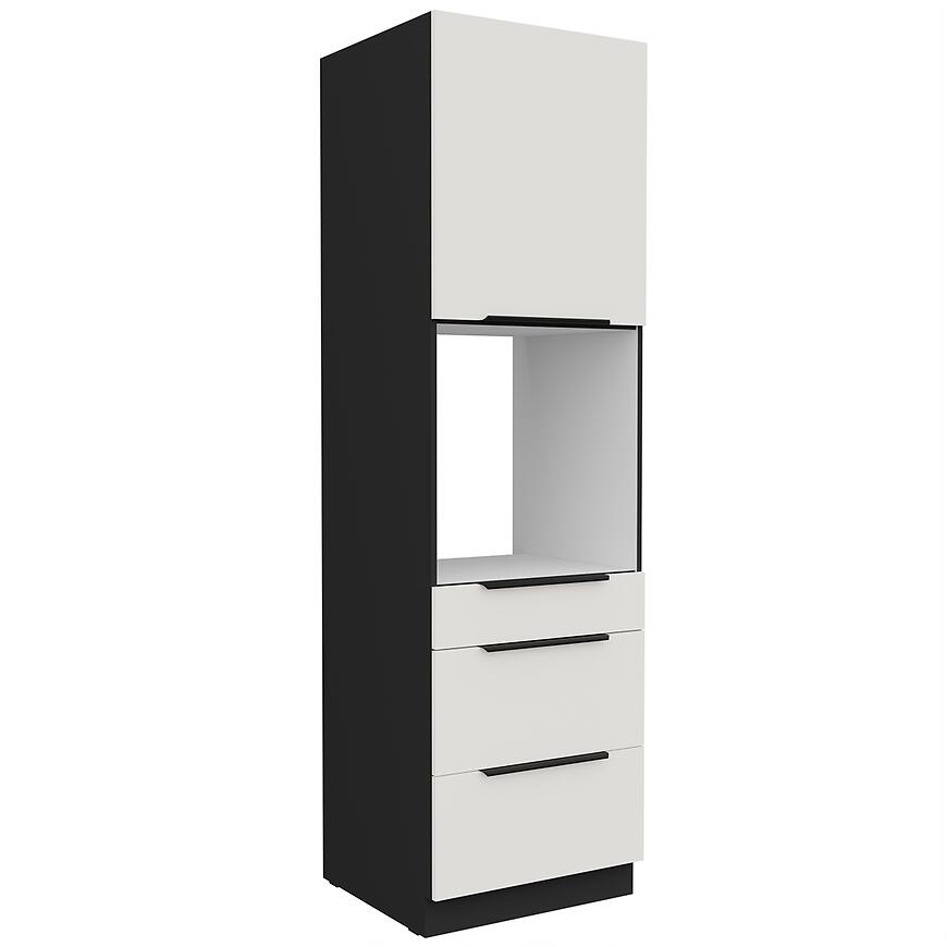 Szafka kuchenna Aria-Wh/Bl Anti Fingerprint 60dps-210 1f 3s to nowoczesna szafka kolumnowa zaprojektowana z myślą o funkcjonalnej i stylowej zabudowie kuchennej. Jej wysokość 210 cm oraz szerokość 60 cm sprawiają, że idealnie nadaje się do tworzenia wysokich ciągów meblowych, które maksymalnie wykorzystują przestrzeń od podłogi aż po sufit. To doskonały wybór dla osób szukających pojemnej, estetycznej i trwałej szafki kuchennej do nowoczesnych wnętrz.