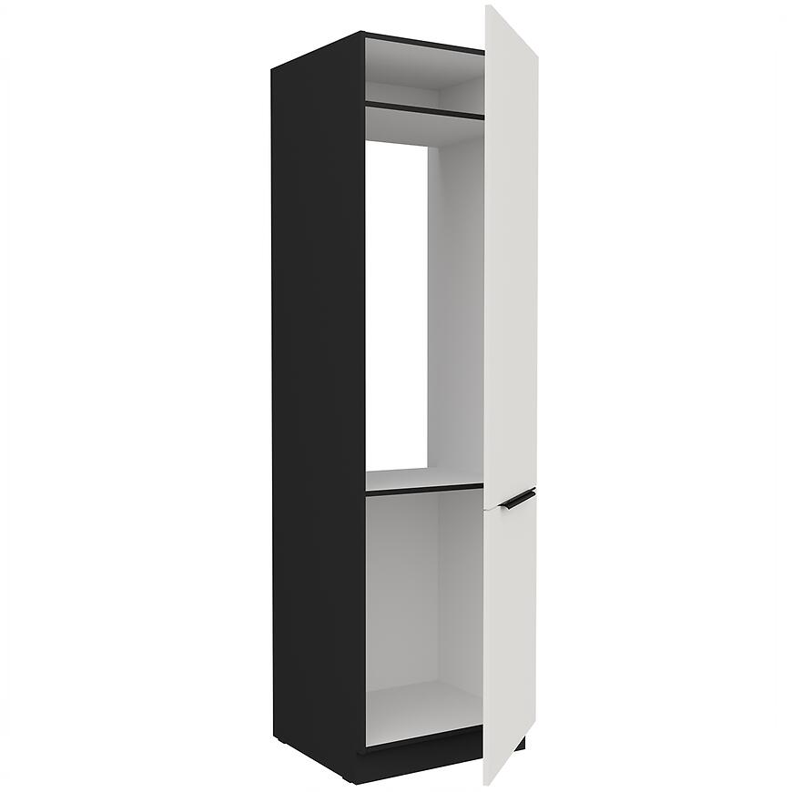 Szafka Kuchenna Aria-Wh/Bl Anti Fingerprint 60lo-210 2f to elegancka i funkcjonalna szafka kolumnowa, która łączy nowoczesny design z dużą pojemnością. Jej wysokość 210 cm, szerokość 60 cm i głębokość 57 cm umożliwiają przechowywanie naczyń, produktów spożywczych, akcesoriów kuchennych oraz drobnego sprzętu AGD w sposób wygodny i uporządkowany.