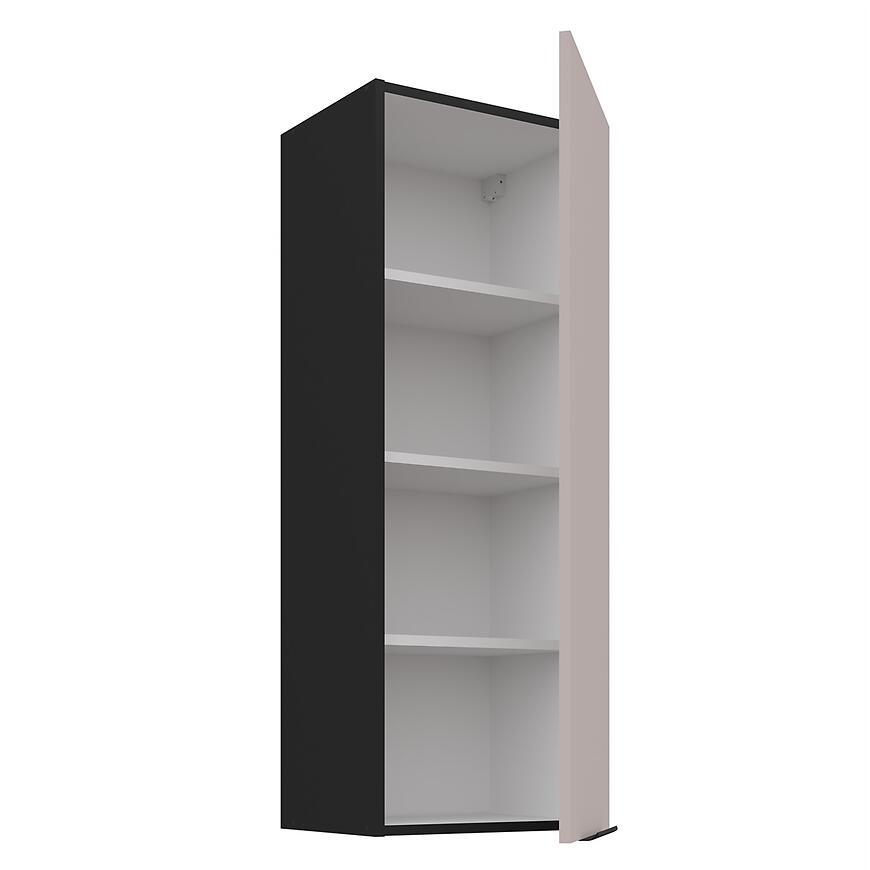 Matowe wykończenie korpusu w kolorze czarnym ułatwia łączenie szafki z innymi elementami zabudowy kuchennej, zarówno w jasnych, jak i ciemniejszych aranżacjach. Jednodrzwiowa konstrukcja gwarantuje łatwy dostęp do wnętrza szafki i porządek w przechowywaniu.