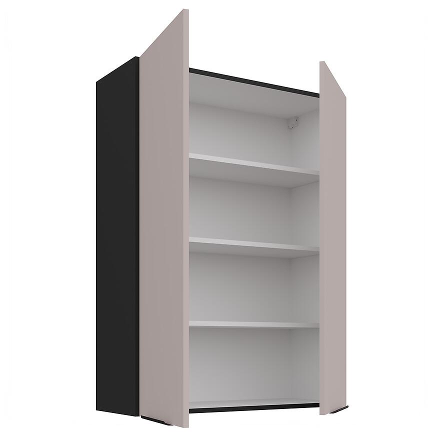 Fronty w kolorze cashmere w subtelnej beżowej tonacji nadają wnętrzu przytulności i elegancji. Matowe wykończenie frontów podkreśla nowoczesny charakter szafki, ułatwiając utrzymanie estetycznego wyglądu. Czarny korpus w matowym wykończeniu tworzy wyraźny kontrast z jasnymi frontami, nadając meblowi stylowy i wyrazisty wygląd, który łatwo dopasować do pozostałych elementów kuchni.