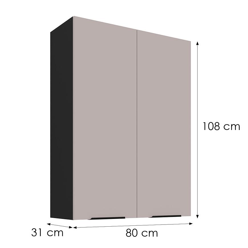 Szafka Arona cashmere 80G-108 2F została wykonana z płyty wiórowej laminowanej, zarówno w części frontowej, jak i korpusowej. Materiał ten zapewnia stabilność i odporność na codzienne użytkowanie w kuchni. Wysokość 108 cm oraz głębokość 31 cm pozwalają na wygodne przechowywanie większych naczyń i produktów, jednocześnie nie zaburzając proporcji wnętrza. Dwudrzwiowa konstrukcja szafki ułatwia dostęp do wnętrza i umożliwia lepszą organizację przechowywanych przedmiotów.