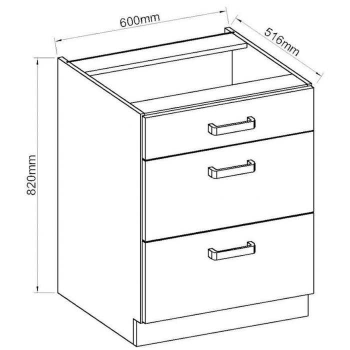 Ten model posiada trzy pojemne szuflady, które umożliwiają wygodne przechowywanie sztućców, przyborów kuchennych czy drobnych naczyń. Szuflady zapewniają szybki dostęp do zawartości i ułatwiają utrzymanie porządku w kuchni.