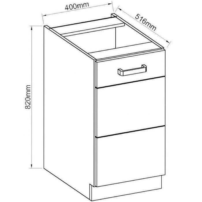 Model 40D 1F BB o szerokości 40 cm, wysokości 82 cm i głębokości 52 cm został zaprojektowany z myślą o wygodnym przechowywaniu naczyń i akcesoriów kuchennych. Jeden front umożliwia szybki dostęp do wnętrza szafki, co ułatwia organizację przestrzeni kuchennej.