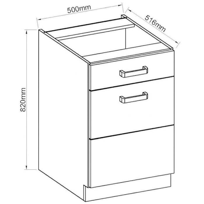 Model 50D 1F 1S o szerokości 50 cm, wysokości 82 cm i głębokości 52 cm został zaprojektowany z myślą o wygodnym przechowywaniu naczyń i akcesoriów kuchennych. Jeden front i jedna szuflada umożliwiają szybki dostęp do wnętrza szafki, ułatwiając utrzymanie porządku w kuchni.
