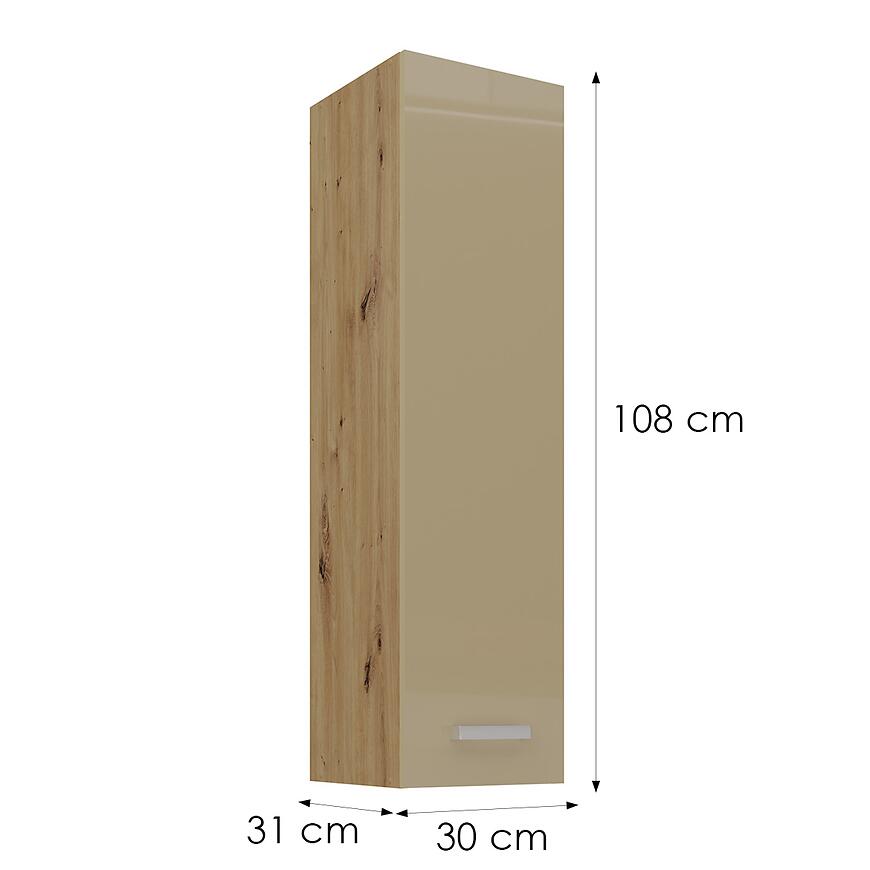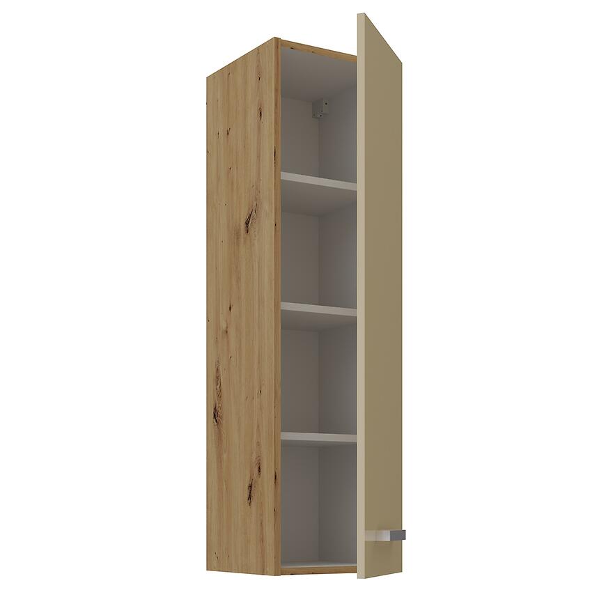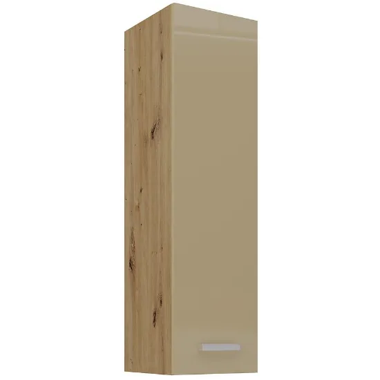 Szafka kuchenna Artisan cappucino 30G-108 1F to wąski moduł górnej zabudowy kuchennej, który łączy nowoczesny design z funkcjonalnością. Należy do kolekcji ARTISAN, charakteryzującej się jasnymi, drewnopodobnymi korpusami oraz frontami w eleganckim połysku. Szafka doskonale sprawdzi się w mniejszych kuchniach, wypełniając przestrzeń nad blatem i zapewniając wygodne miejsce do przechowywania.