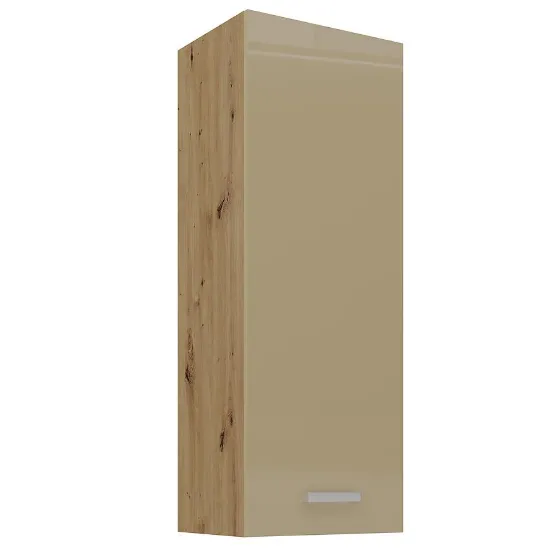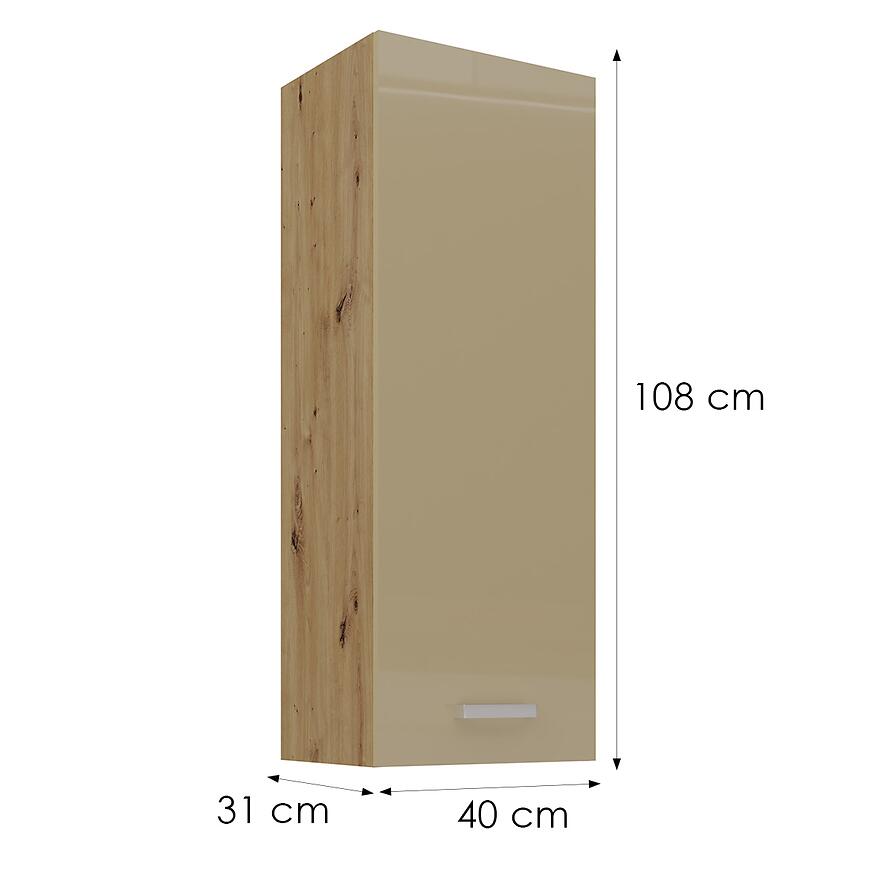 Szafka kuchenna Artisan cappucino 40G-108 1F to funkcjonalny moduł górnej zabudowy kuchennej, który łączy elegancki wygląd z praktycznym wykorzystaniem przestrzeni. Należy do kolekcji ARTISAN, charakteryzującej się jasnymi, drewnopodobnymi korpusami i frontami w połysku, tworząc ciepłą i nowoczesną aranżację kuchni. Szafka o szerokości 40 cm sprawdzi się zarówno jako samodzielny moduł, jak i element większej zabudowy górnej.
