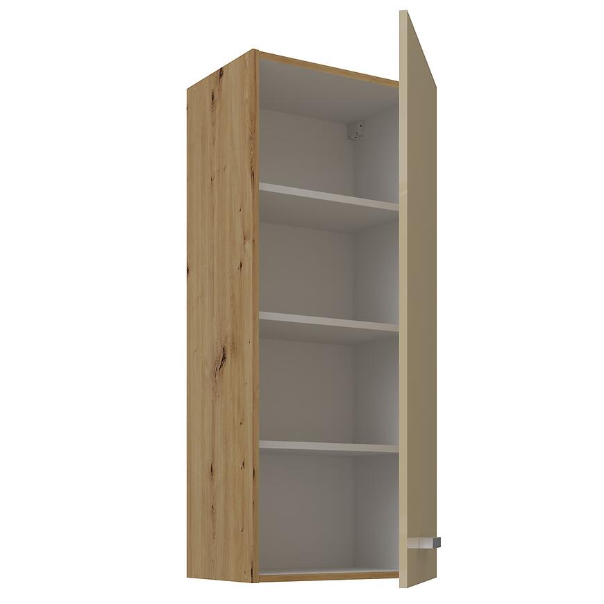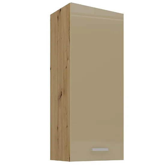 Szafka kuchenna Artisan cappucino 45G-108 1F to funkcjonalny moduł górnej zabudowy kuchennej, który łączy elegancję z praktycznym wykorzystaniem przestrzeni. Należy do kolekcji ARTISAN, charakteryzującej się jasnymi, drewnopodobnymi korpusami i frontami w połysku, które wprowadzają ciepły i nowoczesny charakter do kuchni. Szafka o szerokości 45 cm sprawdzi się zarówno jako samodzielny moduł, jak i element większej zabudowy górnej.