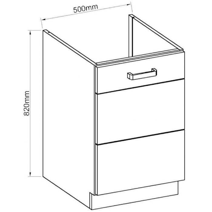 Szafka nie posiada osobnego blatu, co pozwala na dopasowanie jej do innych szafek dolnych lub blatu kuchennego według indywidualnych potrzeb.