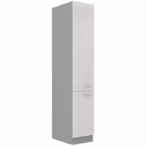 Zestaw mebli kuchennych BIANKA cechuje nowoczesny design i dobry gust. Stworzy wspaniałą kompozycję w nowoczesnym wnętrzu. Fronty górne i dolne w kuchni są wykonane z płyty wiórowej laminowanej w kolorze biały połysk. Korpus to płyta laminowana w kolorze szarym. Zastosowano metalowe uchwyty, które uzupełniają całość. Szafki posiadają system cichego domyku Indamatic, podobnie w szufladach zastosowano system cichego domyku.