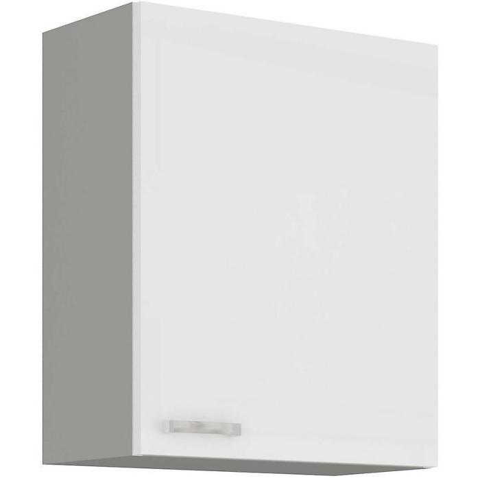 Zestaw mebli kuchennych BIANKA cechuje nowoczesny design i dobry gust. Stworzy wspaniałą kompozycję w nowoczesnym wnętrzu. Fronty górne i dolne w kuchni są wykonane z płyty wiórowej laminowanej w kolorze biały połysk. Korpus to płyta laminowana w kolorze szarym. Zastosowano metalowe uchwyty, które uzupełniają całość. Szafki posiadają system cichego domyku Indamatic, podobnie w szufladach zastosowano system cichego domyku.