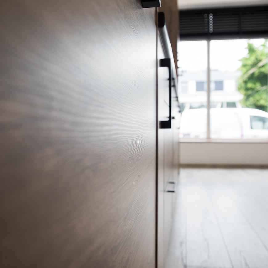 Charakterystyczna cecha kolekcji Bono to kontrast między ciepłym, drewnianym dekorem dąb lefkas, a świeżością bieli. To zestawienie nadaje meblom wyjątkowego charakteru, który przyciąga uwagę i dodaje elegancji kuchni. Matowe wykończenie frontów i korpusów mebli podkreśla ich estetykę, a jednocześnie jest praktyczne i łatwe w utrzymaniu czystości.