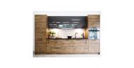 Charakterystyczna cecha kolekcji Bono to kontrast między ciepłym, drewnianym dekorem dąb lefkas, a świeżością bieli. To zestawienie nadaje meblom wyjątkowego charakteru, który przyciąga uwagę i dodaje elegancji kuchni. Matowe wykończenie frontów i korpusów mebli podkreśla ich estetykę, a jednocześnie jest praktyczne i łatwe w utrzymaniu czystości.