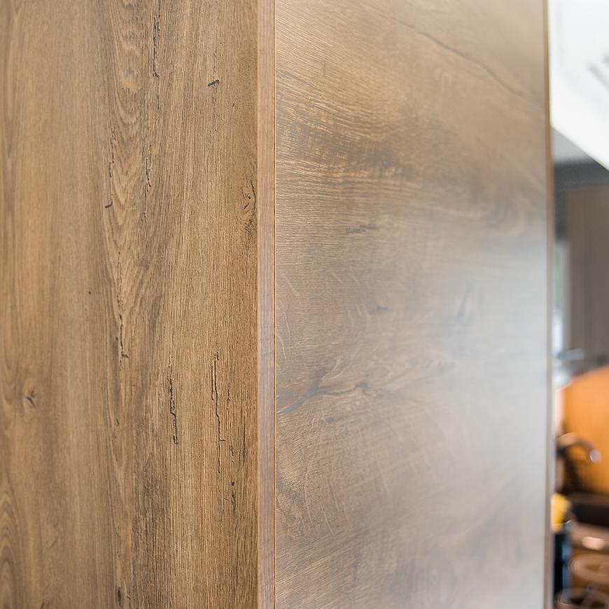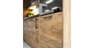 Charakterystyczna cecha kolekcji Bono to kontrast między ciepłym, drewnianym dekorem dąb lefkas, a świeżością bieli. To zestawienie nadaje meblom wyjątkowego charakteru, który przyciąga uwagę i dodaje elegancji kuchni. Matowe wykończenie frontów i korpusów mebli podkreśla ich estetykę, a jednocześnie jest praktyczne i łatwe w utrzymaniu czystości.