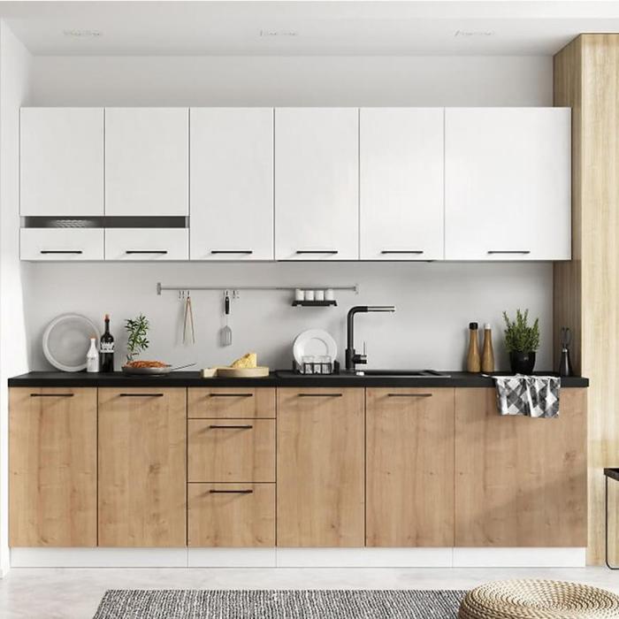 Zestaw jest świetnym i funkcjonalnym rozwiązaniem, pozwoli przeprowadzić szybką metamorfozę Twojego wnętrza. Kolekcja obejmuje szafki z otwieranymi, uchylnymi drzwiami oraz szafki wyposażone w szuflady - zarówno jedne i drugie znajdą swoje zastosowanie w kuchni. Szafki posiadają cichy domyk w zestawie.