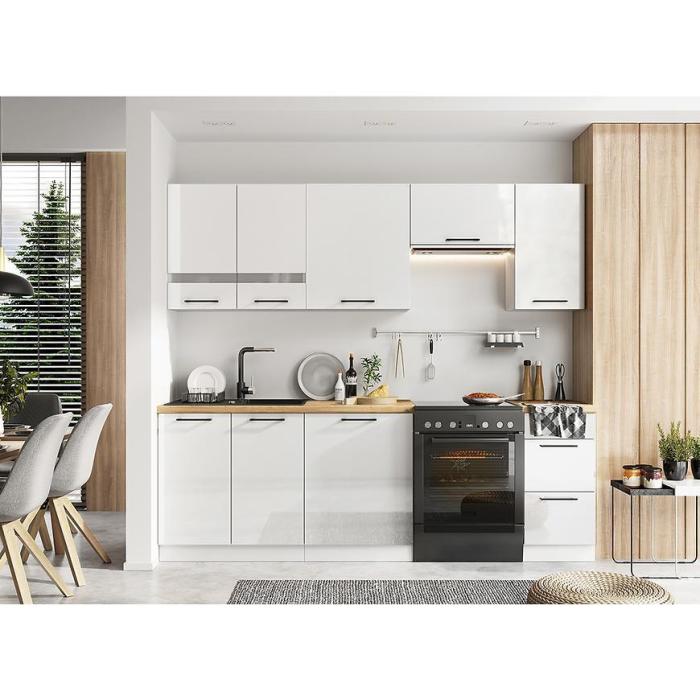 Zestaw jest świetnym i funkcjonalnym rozwiązaniem, pozwoli przeprowadzić szybką metamorfozę Twojego wnętrza. Kolekcja obejmuje szafki z otwieranymi, uchylnymi drzwiami oraz szafki wyposażone w szuflady - zarówno jedne i drugie znajdą swoje zastosowanie w kuchni. Szafki posiadają cichy domyk w zestawie.