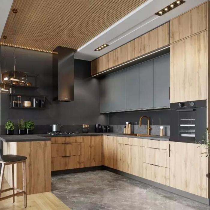 Charakterystyczną cechą kolekcji Bono jest wyjątkowy dekor w kolorze dąb wotan, który nadaje kuchni naturalnego, ciepłego charakteru. Białe elementy mebli stanowią piękny kontrast i dodają świeżości całej aranżacji. Zarówno fronty, jak i korpusy mebli są wykończone matową powłoką, co nadaje całej kolekcji subtelnego uroku i nowoczesnego wyglądu.