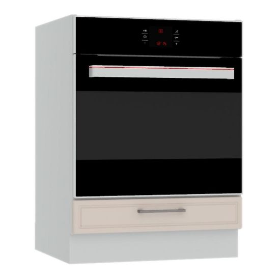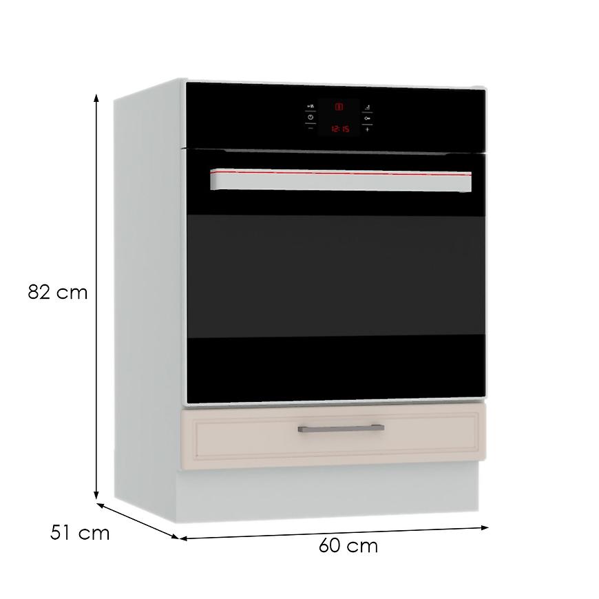Kolor frontów w odcieniu beżu nadaje szafce Brit wyjątkowego uroku, który harmonijnie współgra z różnymi aranżacjami kuchni. Matowe wykończenie frontów dodaje meblowi subtelności i elegancji. Korpus szafki, utrzymany w delikatnym odcieniu popielu, tworzy kontrastowy, a zarazem stonowany kontrast, który podkreśla nowoczesny design mebla. Cokół w kolorze korpusu dodaje wyjątkowego charakteru i podkreśla spójność całości.