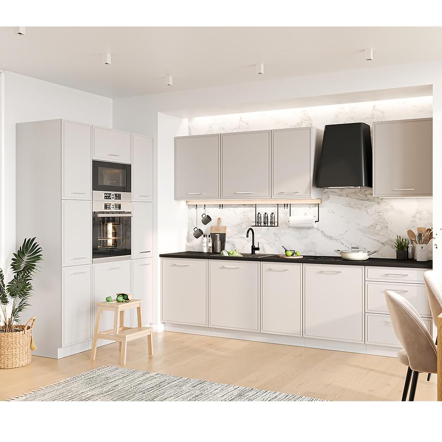 Kolor frontów w odcieniu beżu nadaje szafce Brit wyjątkowego uroku, który harmonijnie współgra z różnymi aranżacjami kuchni. Matowe wykończenie frontów dodaje meblowi subtelności i elegancji.