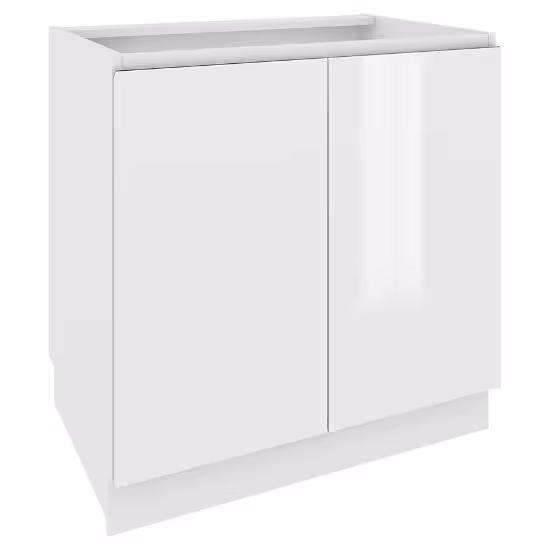 Fronty w białym kolorze i błyszczącym wykończeniu nadają kuchni nowoczesnego charakterui elegancji. Konstrukcja frontów oparta jest na solidnej płycie wiórowej, co gwarantuje trwałość i efektowny wygląd.