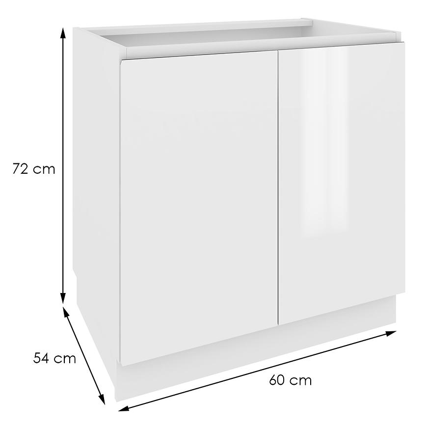 Biały korpus szafki pokryty jest matową powłoką, która stanowi doskonałe tło do połyskujących frontów. Konstrukcja korpusu opiera się na wytrzymałej płycie laminowanej, zapewniając trwałość i odporność na uszkodzenia.
