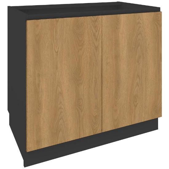 Szafka kuchenna Campari o wymiarach 82x90x54cm doskonale wpisze się w projekt kuchni, zapewniając przy tym optymalne wykorzystanie przestrzeni. Fronty w dębowym dekorze w odcieniu karmelu tworzą harmonijny kontrast z czarnym korpusem. Matowe wykończenie dodaje subtelności, podkreślając jednocześnie ich wysoką jakość. Cokół w kolorze korpusu gwarantuje spójny wygląd, jednocześnie chroniąc mebel przed kurzem i zabrudzeniami.