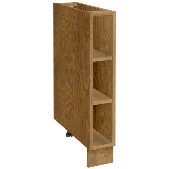 Szafka kuchenna Campari o wymiarach 82x15x54cm doskonale wpisze się w projekt kuchni, zapewniając przy tym optymalne wykorzystanie przestrzeni. Korpus w dębowym dekorze w odcieniu karmelu tworzą harmonijny kontrast z pozostałą aranżacją. Matowe wykończenie dodaje subtelności, podkreślając jednocześnie wysoką jakość. Cokół w kolorze korpusu gwarantuje spójny wygląd, jednocześnie chroniąc mebel przed kurzem i zabrudzeniami.