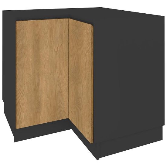 Szafka kuchenna Campari o wymiarach 82x86x86x54cm doskonale wpisze się w projekt kuchni, zapewniając przy tym optymalne wykorzystanie przestrzeni. Fronty w dębowym dekorze w odcieniu karmelu tworzą harmonijny kontrast z czarnym korpusem. Matowe wykończenie dodaje subtelności, podkreślając jednocześnie ich wysoką jakość. Cokół w kolorze korpusu gwarantuje spójny wygląd, jednocześnie chroniąc mebel przed kurzem i zabrudzeniami.
