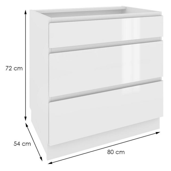 Fronty będą ciekawym dodatkiem i elementem dekoracyjnym kuchni. Białe wybarwienie frontów sprawią, że model ten wpasuje się w wiele modnych aranżacji kuchennych. Konstrukcja frontów to płyta wiórowa z folią połyskową, korpus wykonania to płyta laminowana w wykończeniu matowym.