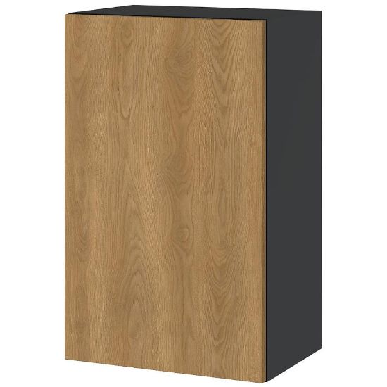Fronty z płyty wiórowej laminowanej gwarantują trwałość i odporność na uszkodzenia, zapewniając długotrwałe użytkowanie. Ta szafka została starannie zaprojektowana z myślą o zabudowie wiszącej, co czyni ją praktycznym i estetycznym dodatkiem do każdej kuchni.