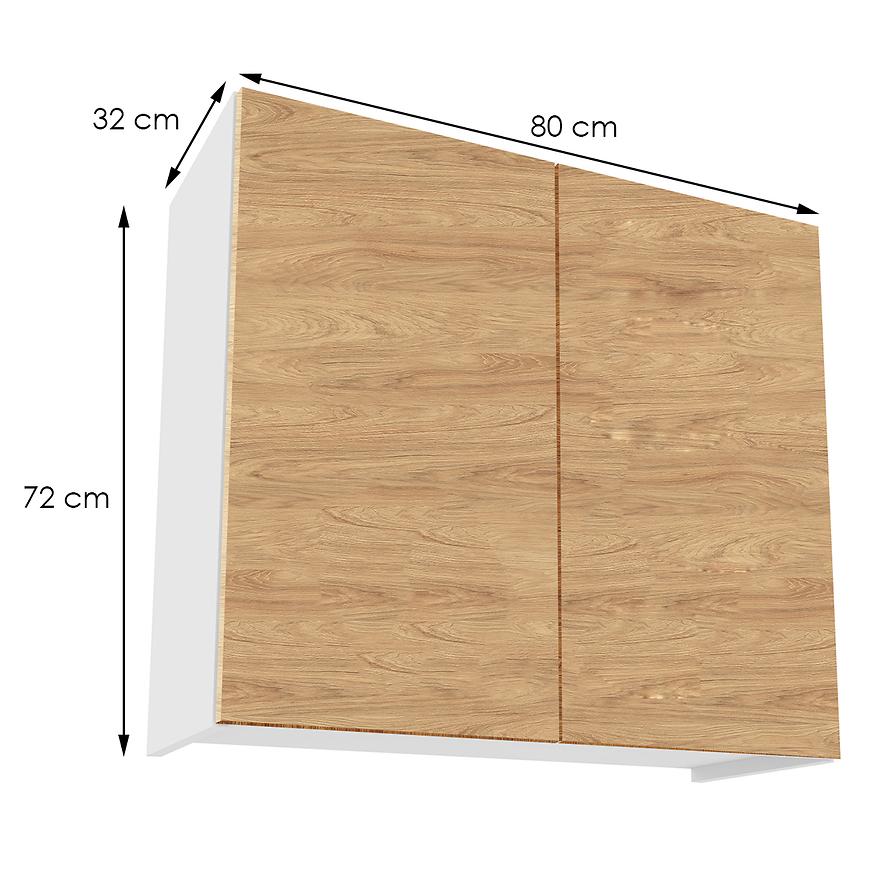 Elegancka szafka kuchenna wisząca z kolekcji Campari zachwyca swoim wyglądem i funkcjonalnością. Jej fronty w kolorze hikory prezentują się niezwykle stylowo, nadając kuchni wyjątkowego charakteru. Kontrastują one pięknie z białym kolorem korpusu, co dodaje pomieszczeniu lekkości i nowoczesnego wyrazu.
