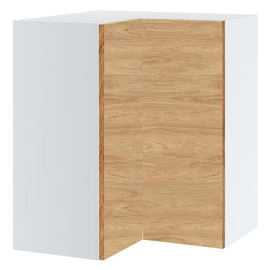 Elegancka szafka kuchenna wisząca z kolekcji Campari zachwyca swoim wyglądem i funkcjonalnością. Jej fronty w kolorze hikory prezentują się niezwykle stylowo, nadając kuchni wyjątkowego charakteru. Kontrastują one pięknie z białym kolorem korpusu, co dodaje pomieszczeniu lekkości i nowoczesnego wyrazu.