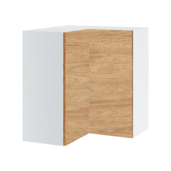 Elegancka szafka kuchenna wisząca z kolekcji Campari zachwyca swoim wyglądem i funkcjonalnością. Jej fronty w kolorze hikory prezentują się niezwykle stylowo, nadając kuchni wyjątkowego charakteru. Kontrastują one pięknie z białym kolorem korpusu, co dodaje pomieszczeniu lekkości i nowoczesnego wyrazu.