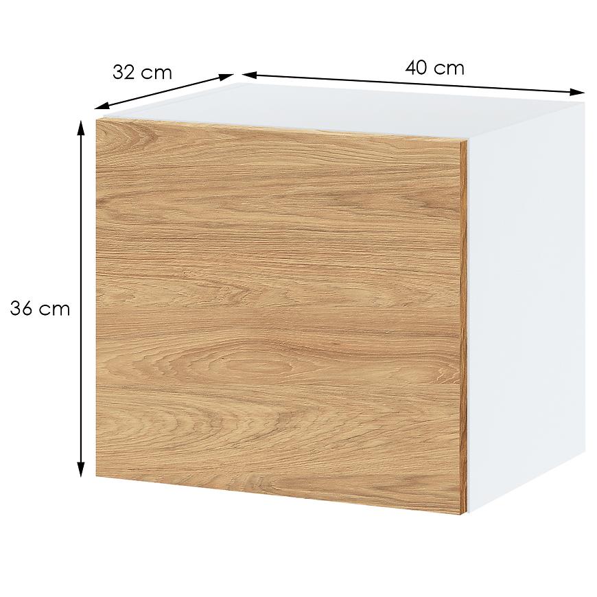 Elegancka szafka kuchenna wisząca z kolekcji Campari zachwyca swoim wyglądem i funkcjonalnością. Jej fronty w kolorze hikory prezentują się niezwykle stylowo, nadając kuchni wyjątkowego charakteru. Kontrastują one pięknie z białym kolorem korpusu, co dodaje pomieszczeniu lekkości i nowoczesnego wyrazu.