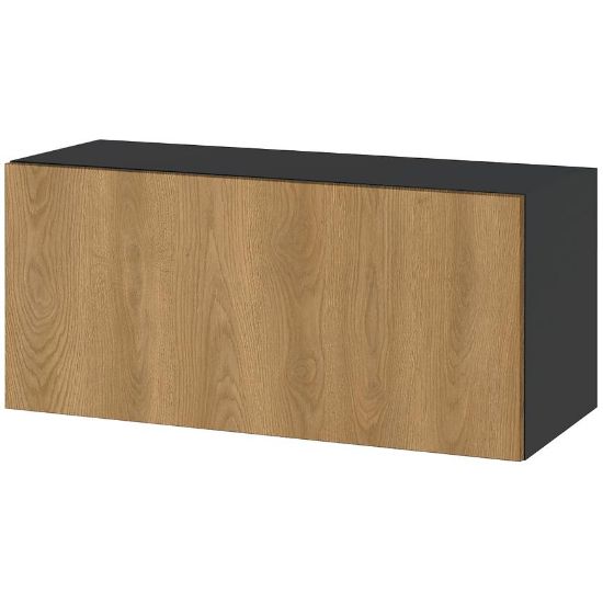 Dąb karmelowy, użyty do produkcji frontów, nadaje szafce niepowtarzalny charakter. To elegancki kolor, który doskonale współgra z wieloma aranżacjami wnętrz, dodając im ciepła i przytulności. Czarny korpus w matowym wykończeniu to idealne tło dla frontów, tworząc kontrastowy efekt i dodając nowoczesności.