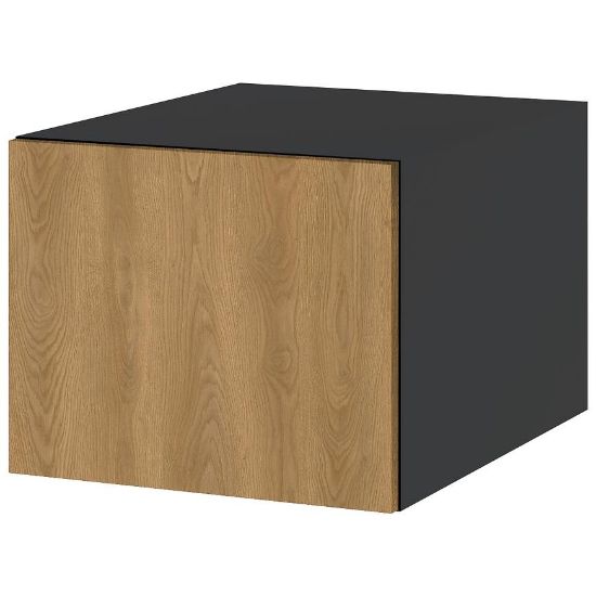 Dąb karmelowy, użyty do produkcji frontów, nadaje szafce niepowtarzalny charakter. To elegancki kolor, który doskonale współgra z wieloma aranżacjami wnętrz, dodając im ciepła i przytulności. Czarny korpus w matowym wykończeniu to idealne tło dla frontów, tworząc kontrastowy efekt i dodając nowoczesności.