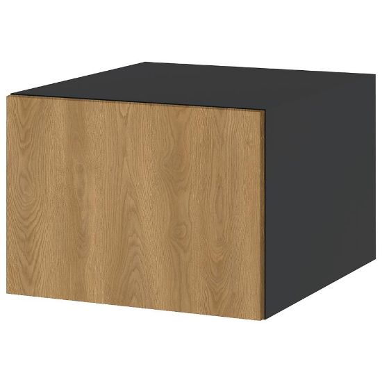 Dąb karmelowy, użyty do produkcji frontów, nadaje szafce niepowtarzalny charakter. To elegancki kolor, który doskonale współgra z wieloma aranżacjami wnętrz, dodając im ciepła i przytulności. Czarny korpus w matowym wykończeniu to idealne tło dla frontów, tworząc kontrastowy efekt i dodając nowoczesności.
