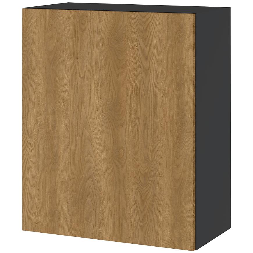 Dąb karmelowy, użyty do produkcji frontów, nadaje szafce niepowtarzalny charakter. To elegancki kolor, który doskonale współgra z wieloma aranżacjami wnętrz, dodając im ciepła i przytulności. Czarny korpus w matowym wykończeniu to idealne tło dla frontów, tworząc kontrastowy efekt i dodając nowoczesności.