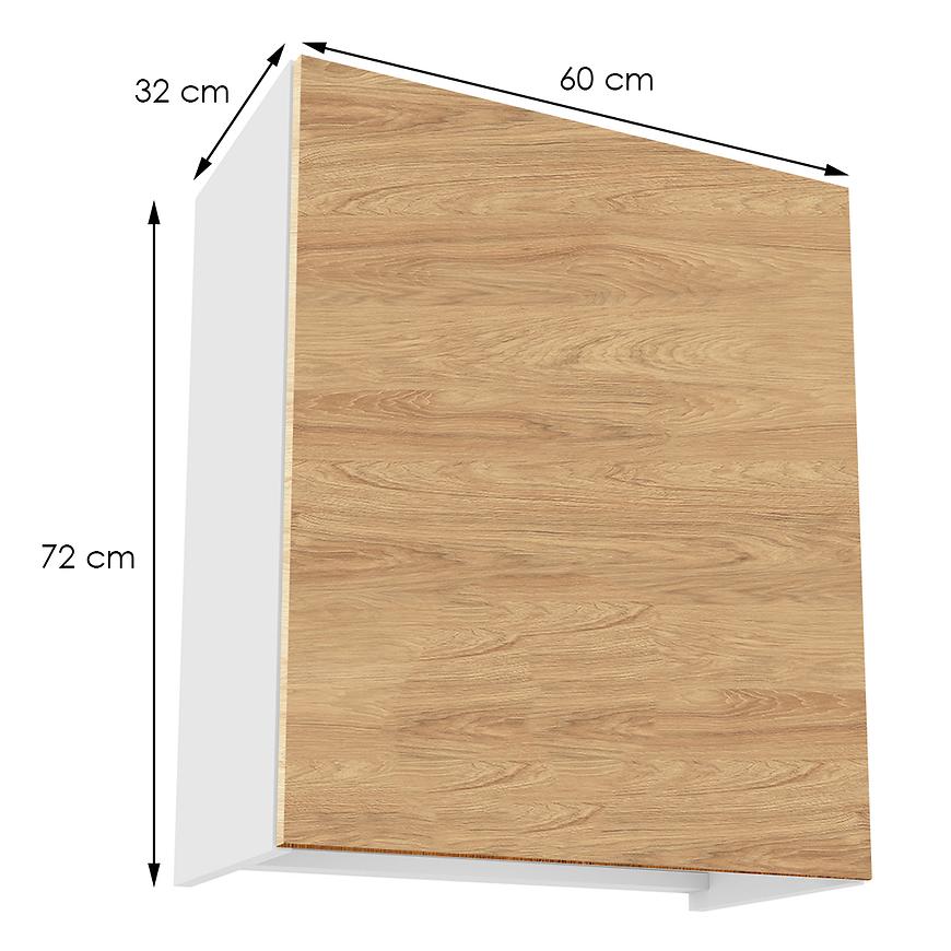 Elegancka szafka kuchenna wisząca z kolekcji Campari zachwyca swoim wyglądem i funkcjonalnością. Jej fronty w kolorze hikory prezentują się niezwykle stylowo, nadając kuchni wyjątkowego charakteru. Kontrastują one pięknie z białym kolorem korpusu, co dodaje pomieszczeniu lekkości i nowoczesnego wyrazu.