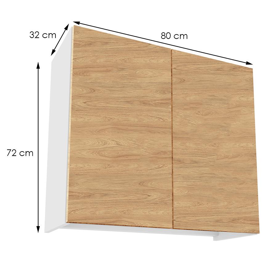 Elegancka szafka kuchenna wisząca z kolekcji Campari zachwyca swoim wyglądem i funkcjonalnością. Jej fronty w kolorze hikory prezentują się niezwykle stylowo, nadając kuchni wyjątkowego charakteru. Kontrastują one pięknie z białym kolorem korpusu, co dodaje pomieszczeniu lekkości i nowoczesnego wyrazu.