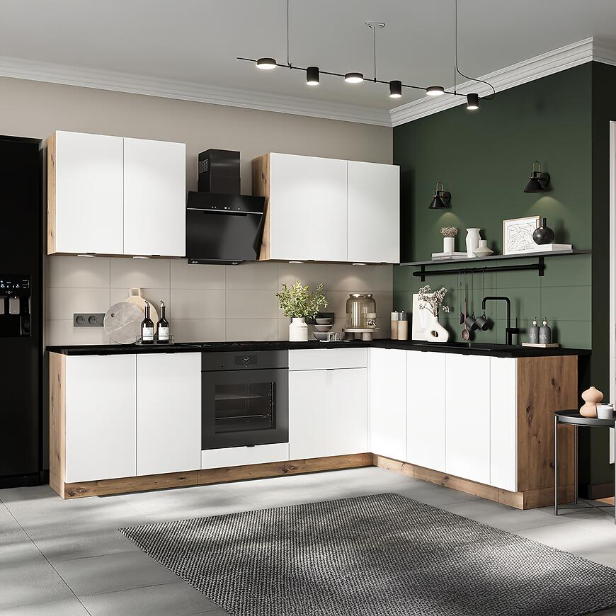 Górna szafka kuchenna COSMO – biała alaska i dąb artisan w harmonijnej zabudowie