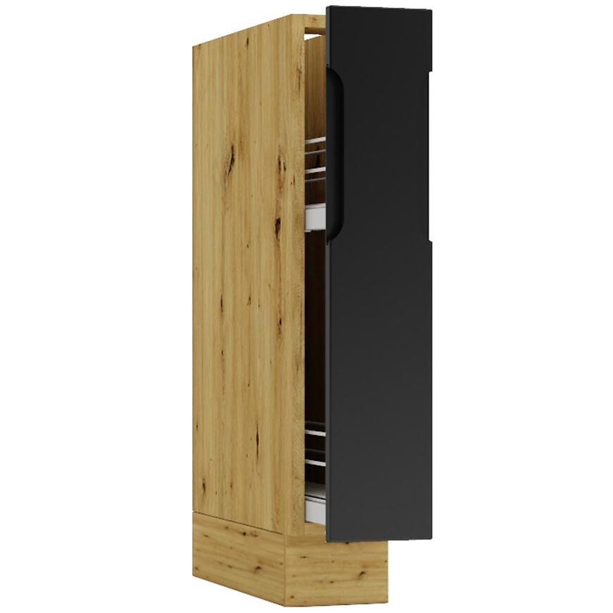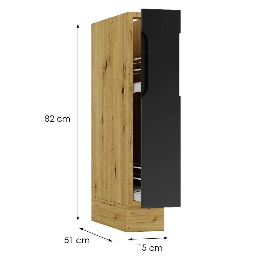 Szafka Cosmo Isabel D15 Cargo + Kosz Czarny Groszek / Dąb Artisan to praktyczny i estetyczny element zestawu kuchennego COSMO.