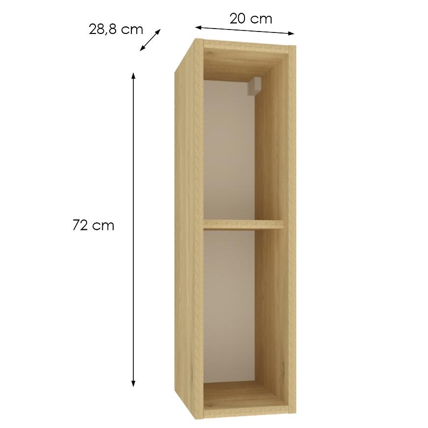 Model Wo20 o wymiarach 72 × 20 × 28,8 cm idealnie sprawdzi się w miejscach, gdzie liczy się każdy centymetr przestrzeni. Szafka może pełnić funkcję dodatkowego miejsca do przechowywania przypraw, naczyń lub drobnych akcesoriów kuchennych. Dzięki swojej smukłej formie świetnie wygląda zarówno samodzielnie, jak i w połączeniu z innymi elementami kolekcji COSMO SOFIA.
