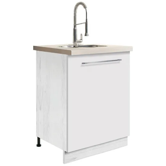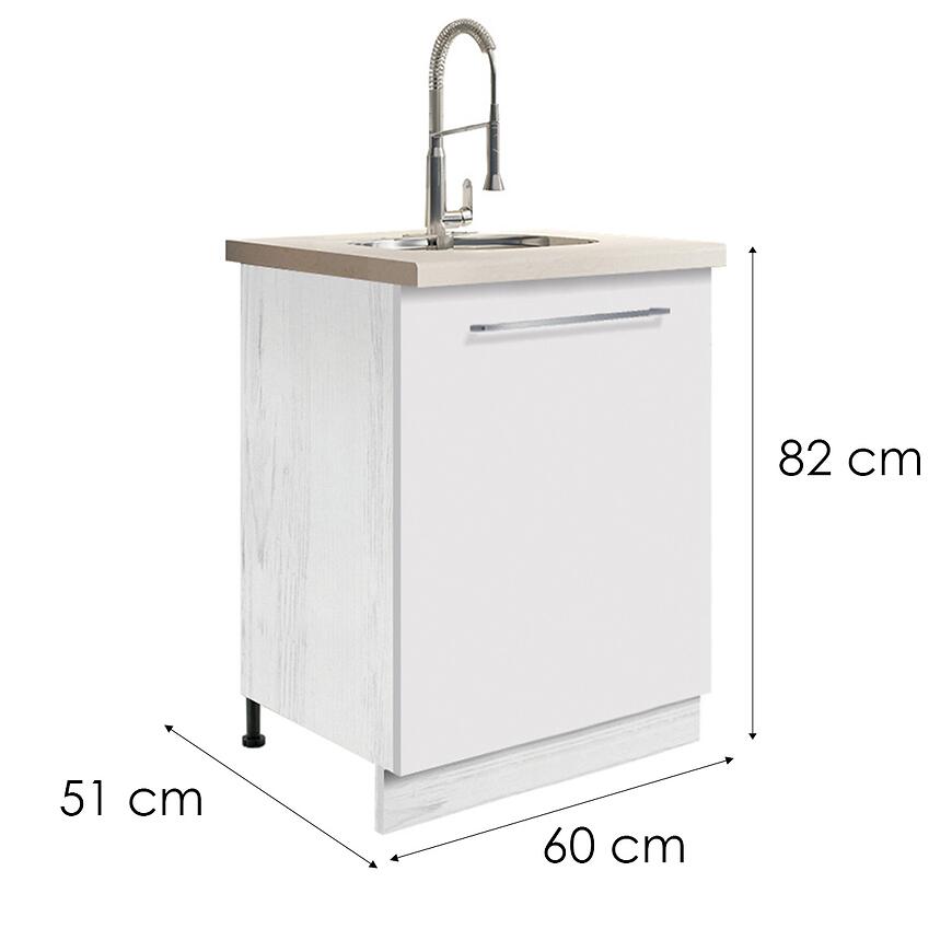 Fronty wykonane z laminowanej płyty wiórowej wykończone na wysoki połysk odbijają światło, optycznie powiększając przestrzeń. Korpus w matowym wykończeniu zapewnia trwałość i odporność na codzienne użytkowanie. Szafka należy do kategorii szafek kuchennych dolnych, dzięki czemu stanowi solidną bazę pod zabudowę kuchenną.